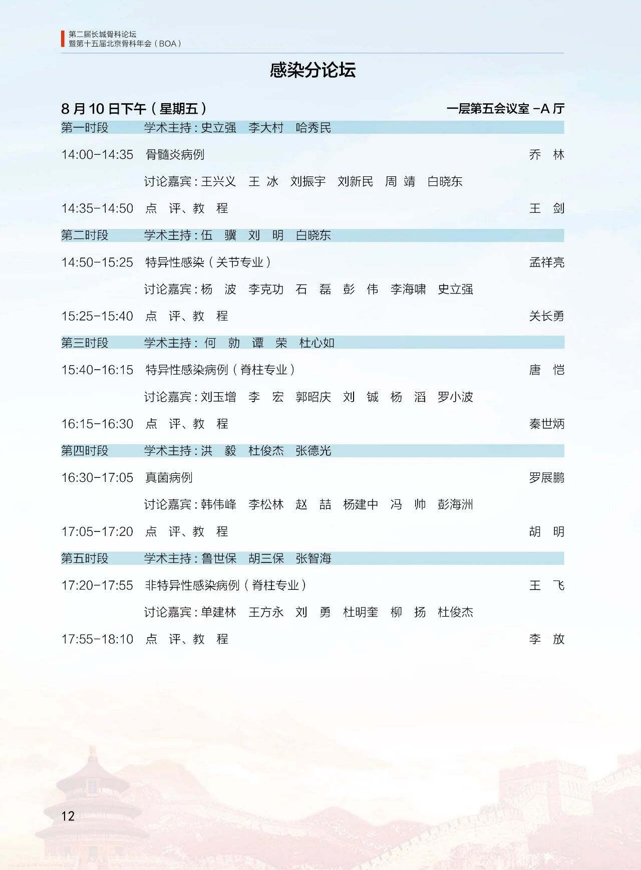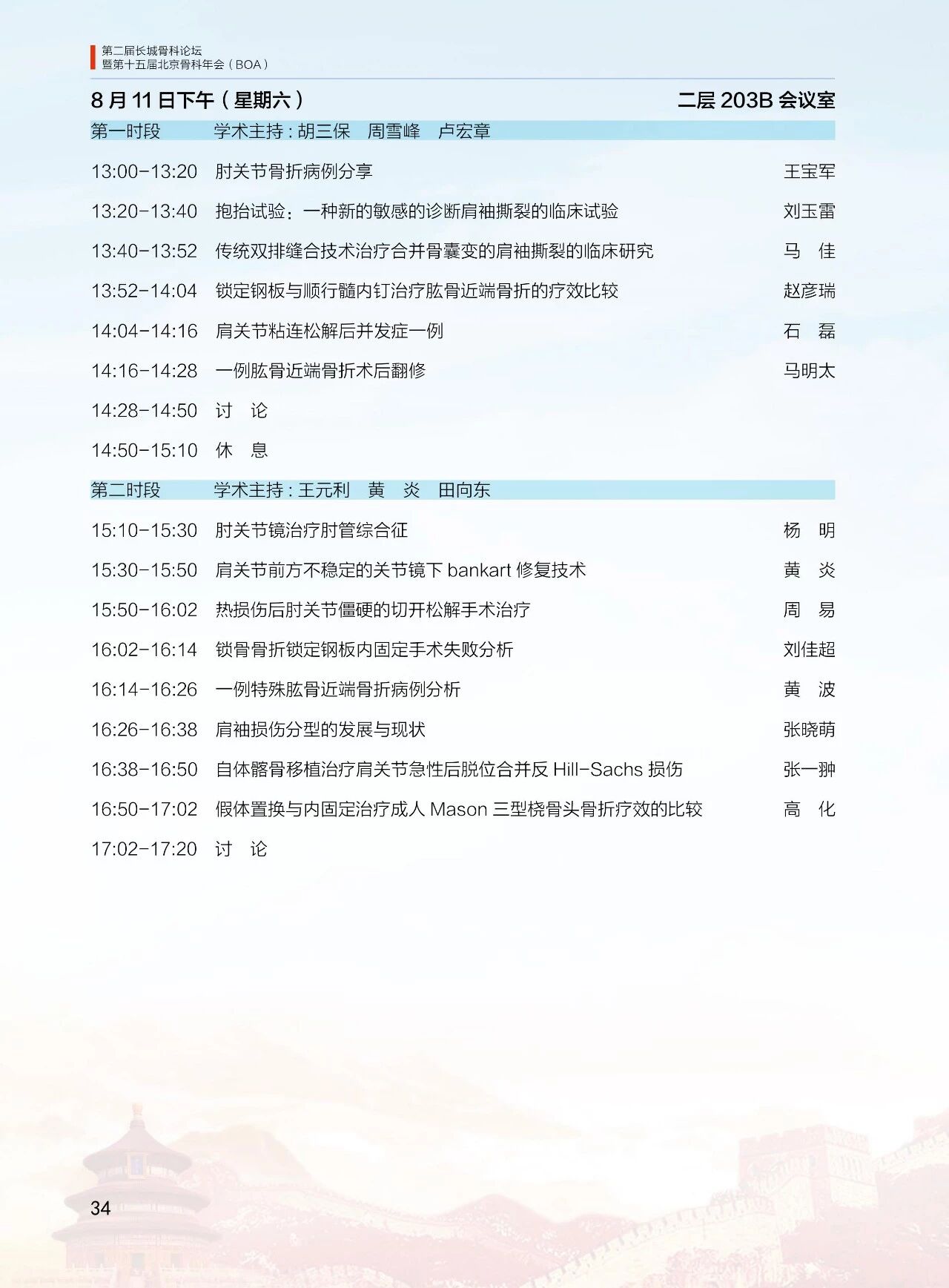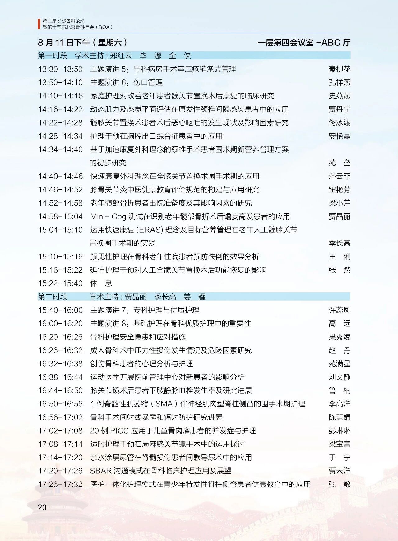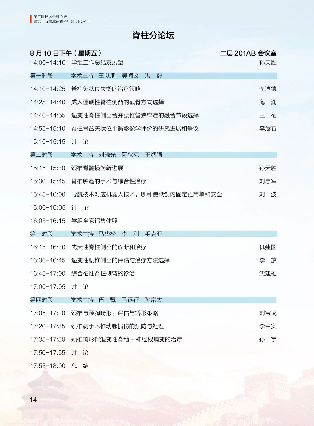 8月11日(周六)13:30-18:00 北京醫學會骨科學組分會(12 個分會場)論壇