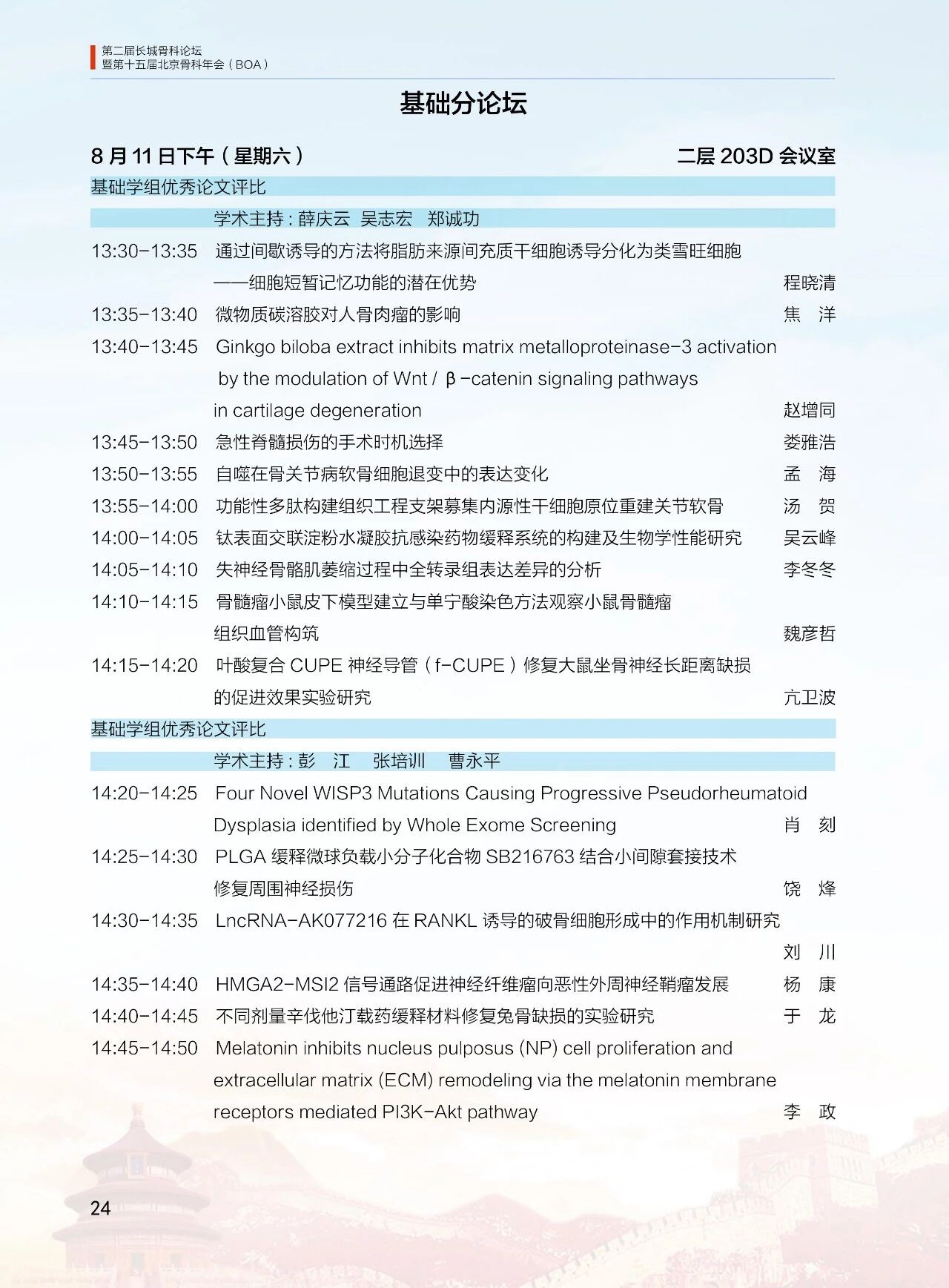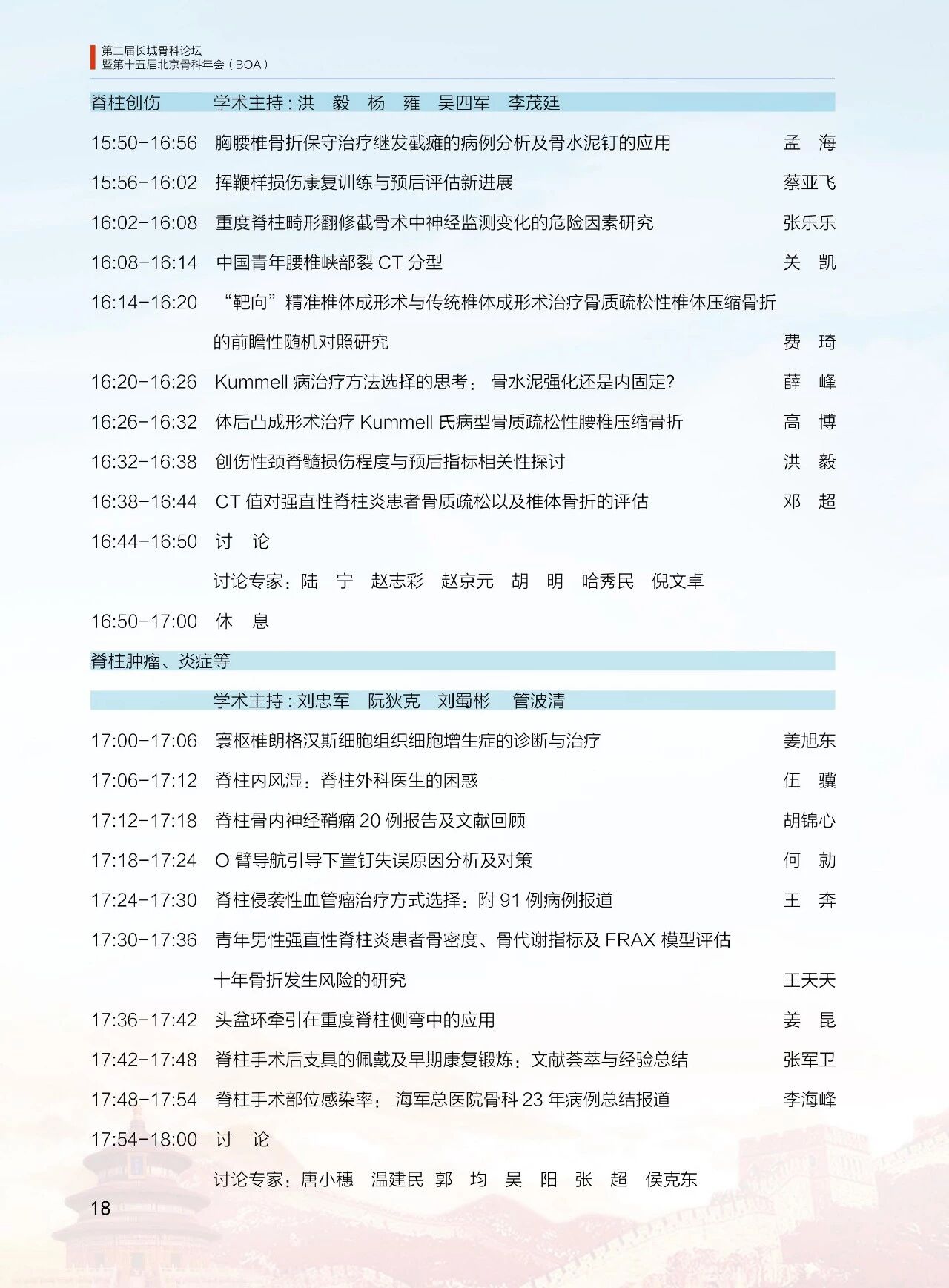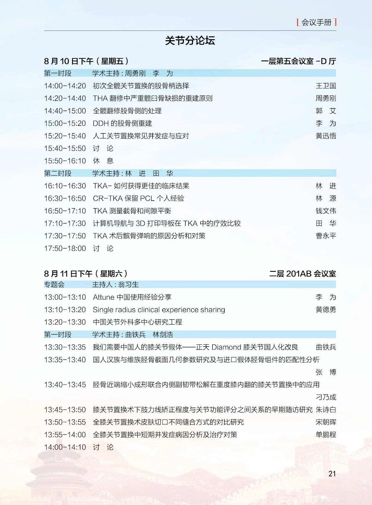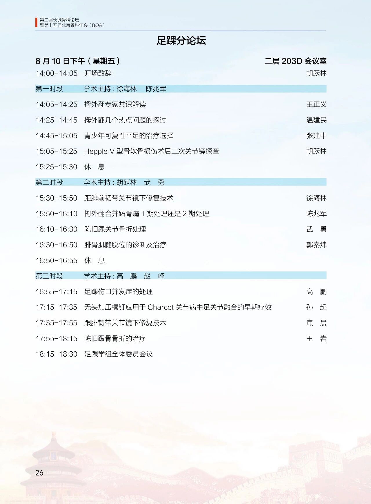 8月11日(周六)13:30-18:00 北京醫學會骨科學組分會(12 個分會場)論壇