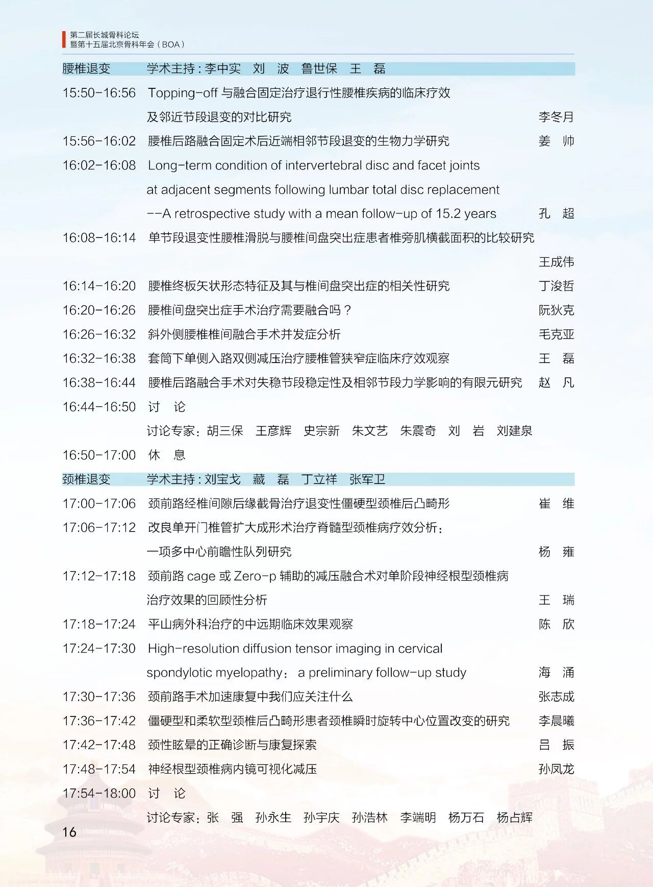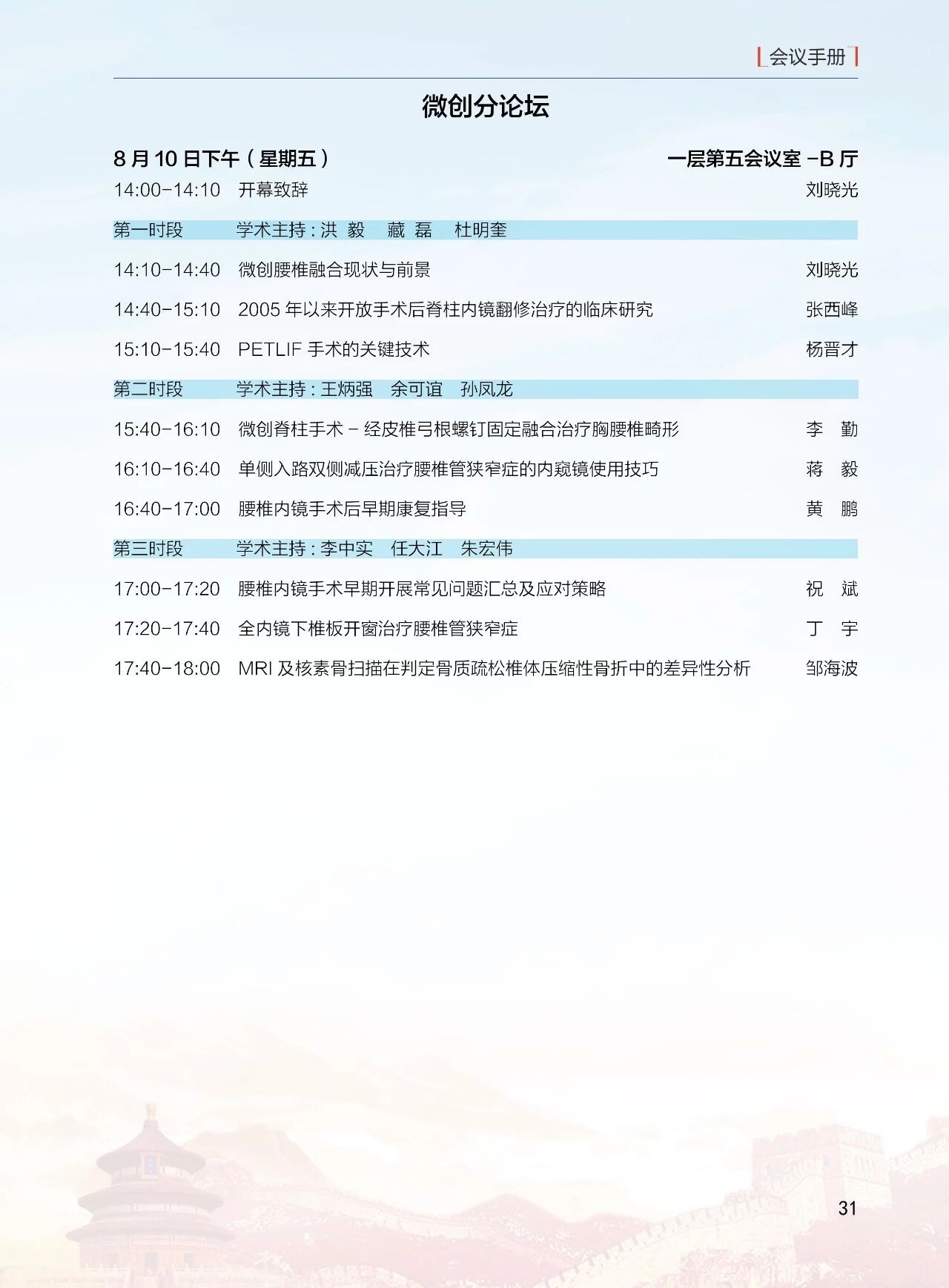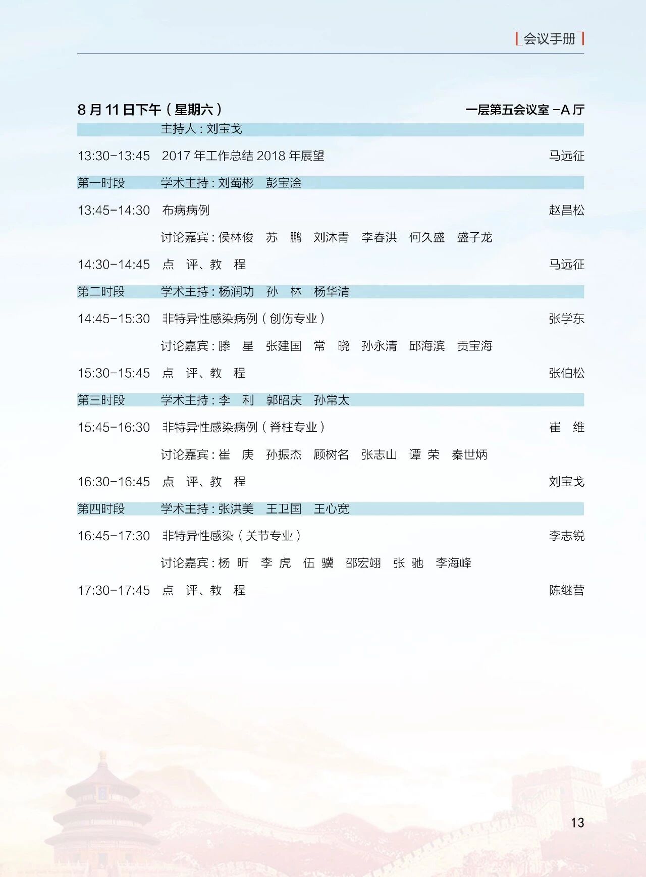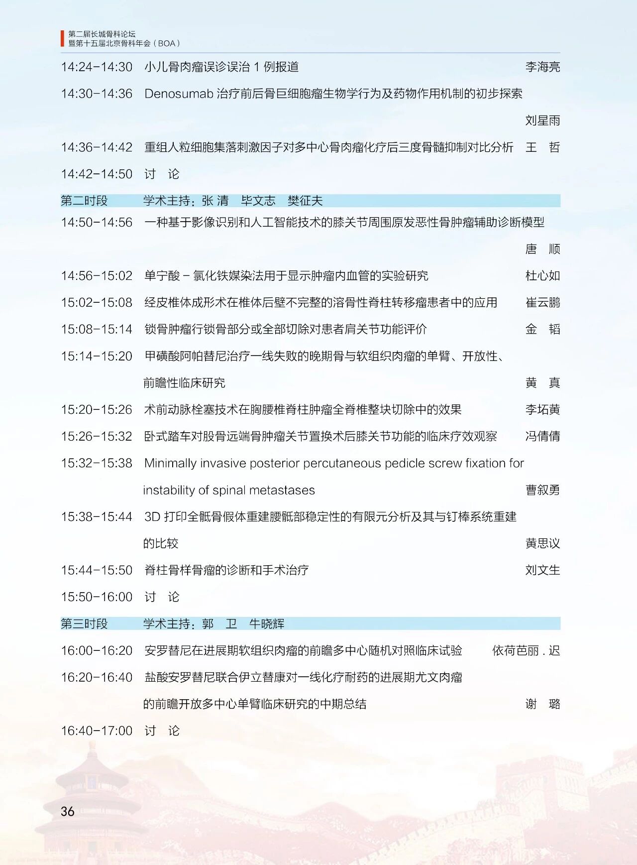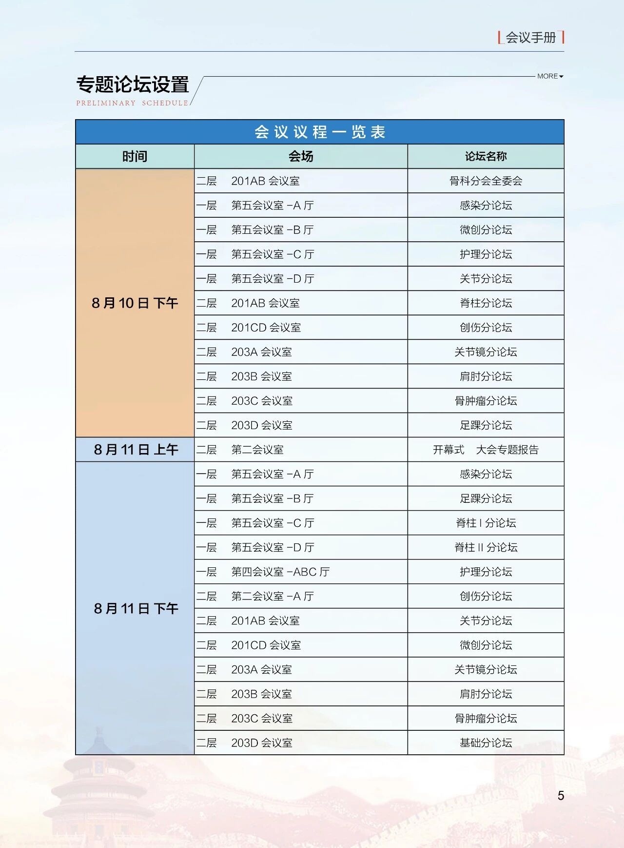 8月11日(周六)13:30-18:00 北京醫學會骨科學組分會(12 個分會場)論壇