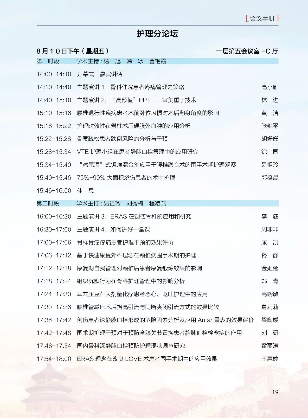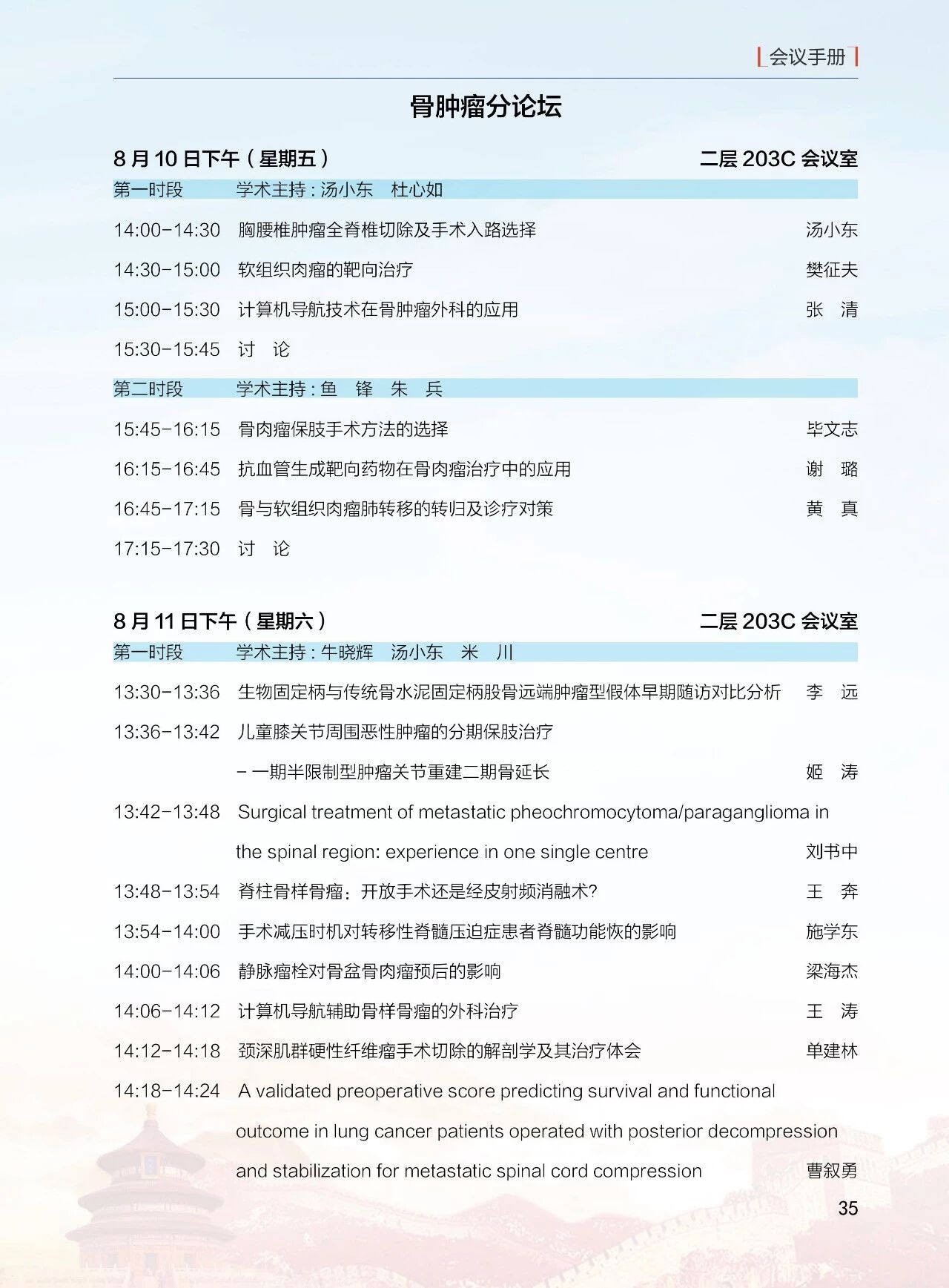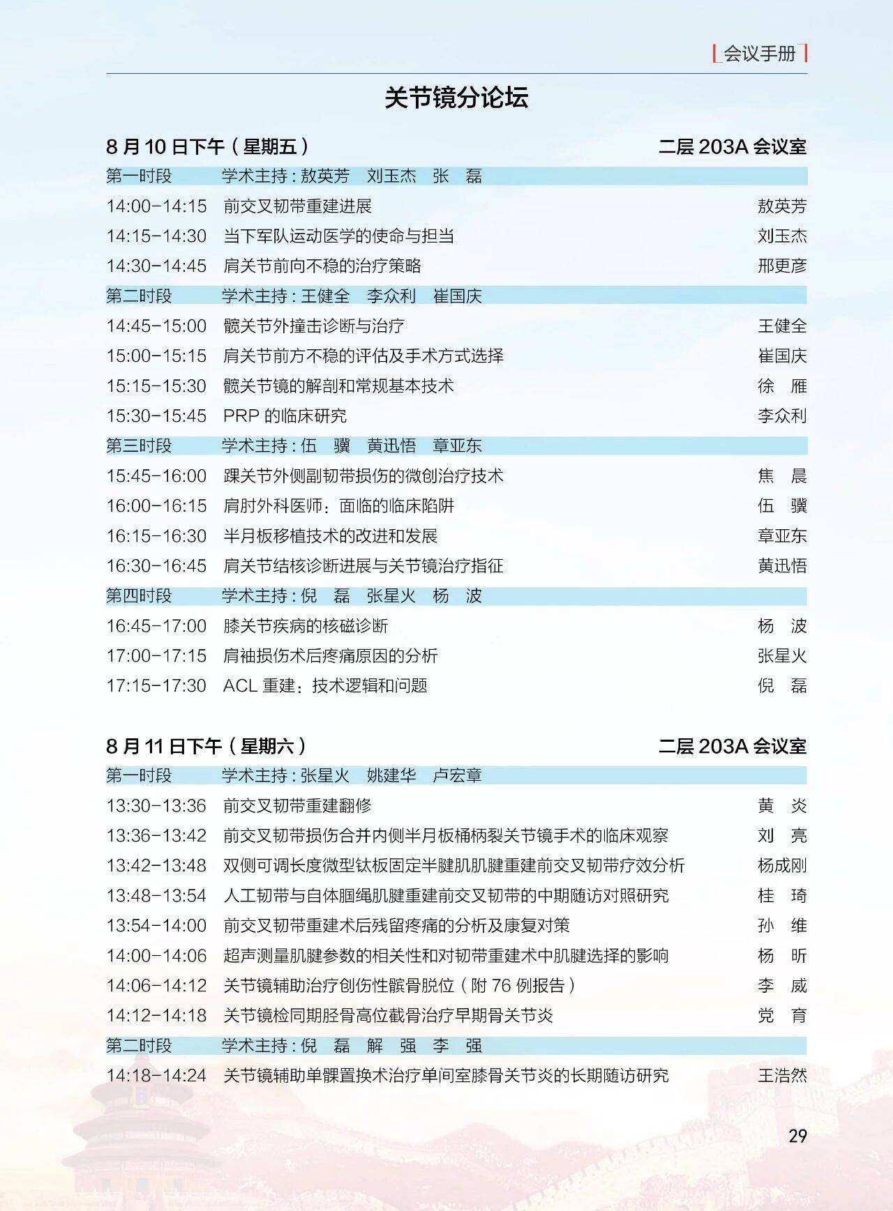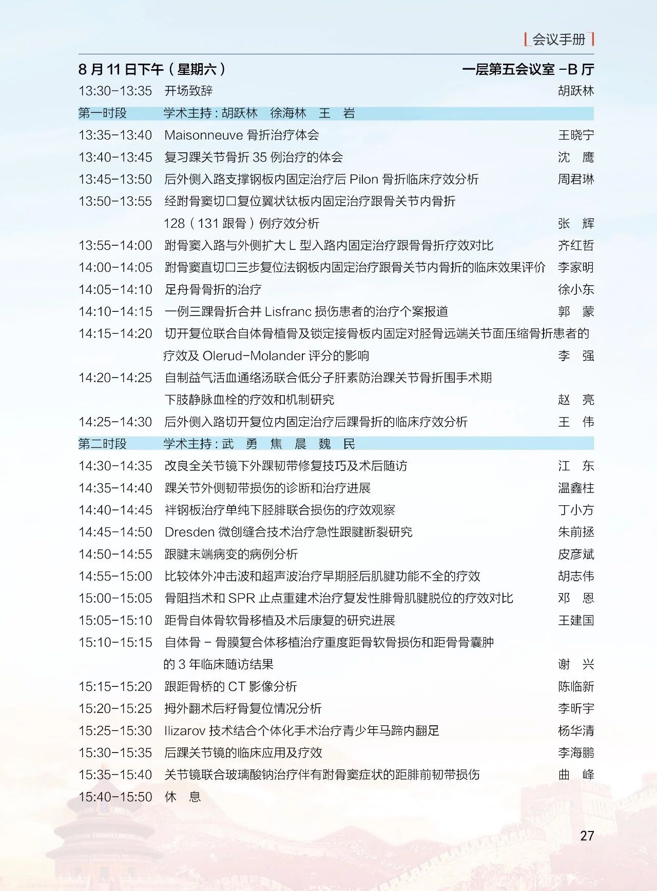 8月11日(周六)13:30-18:00 北京醫學會骨科學組分會(12 個分會場)論壇
