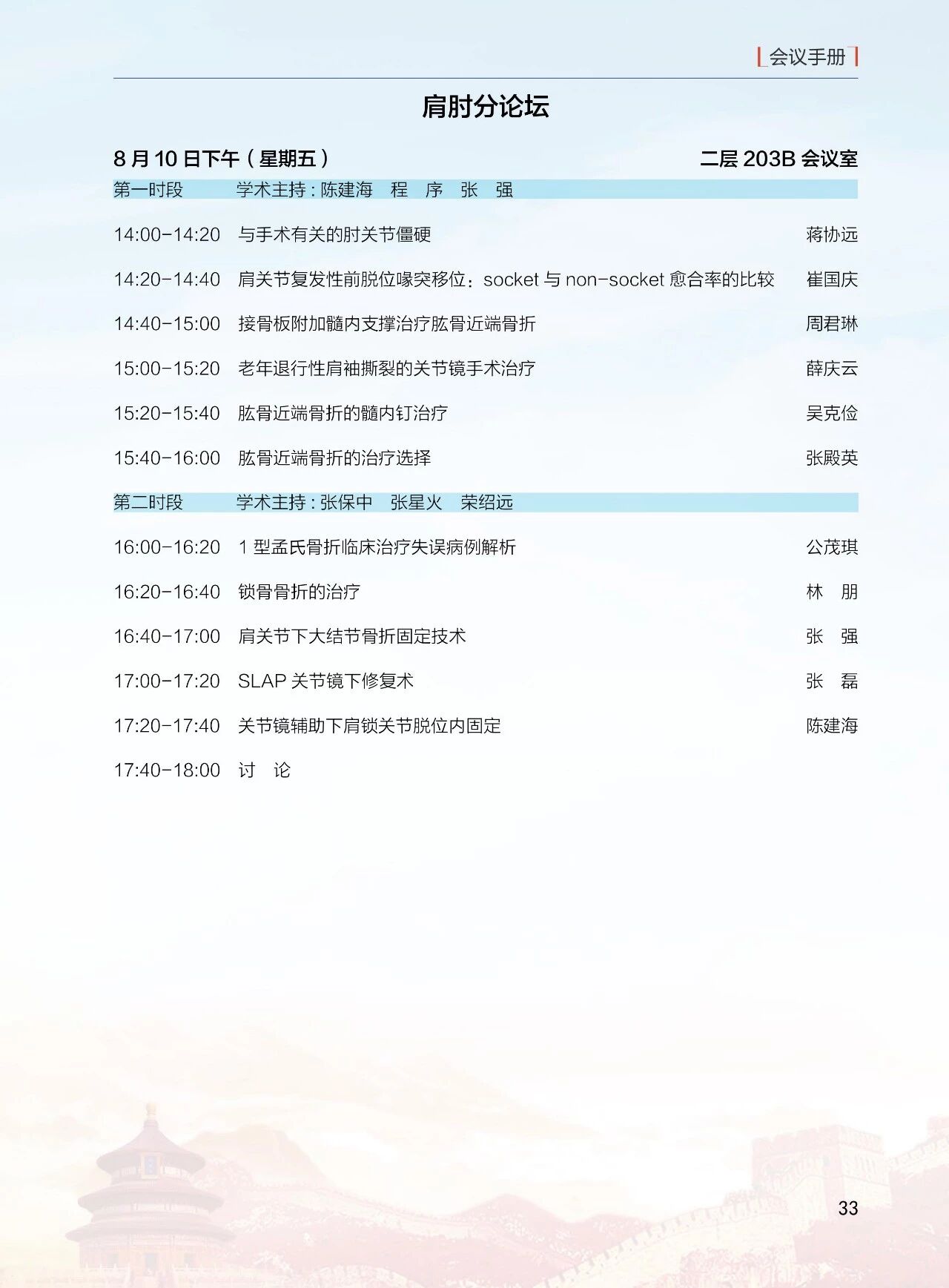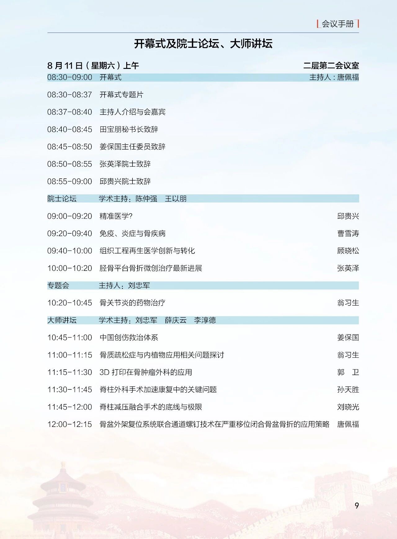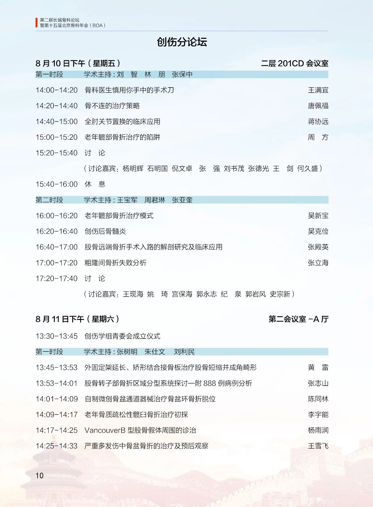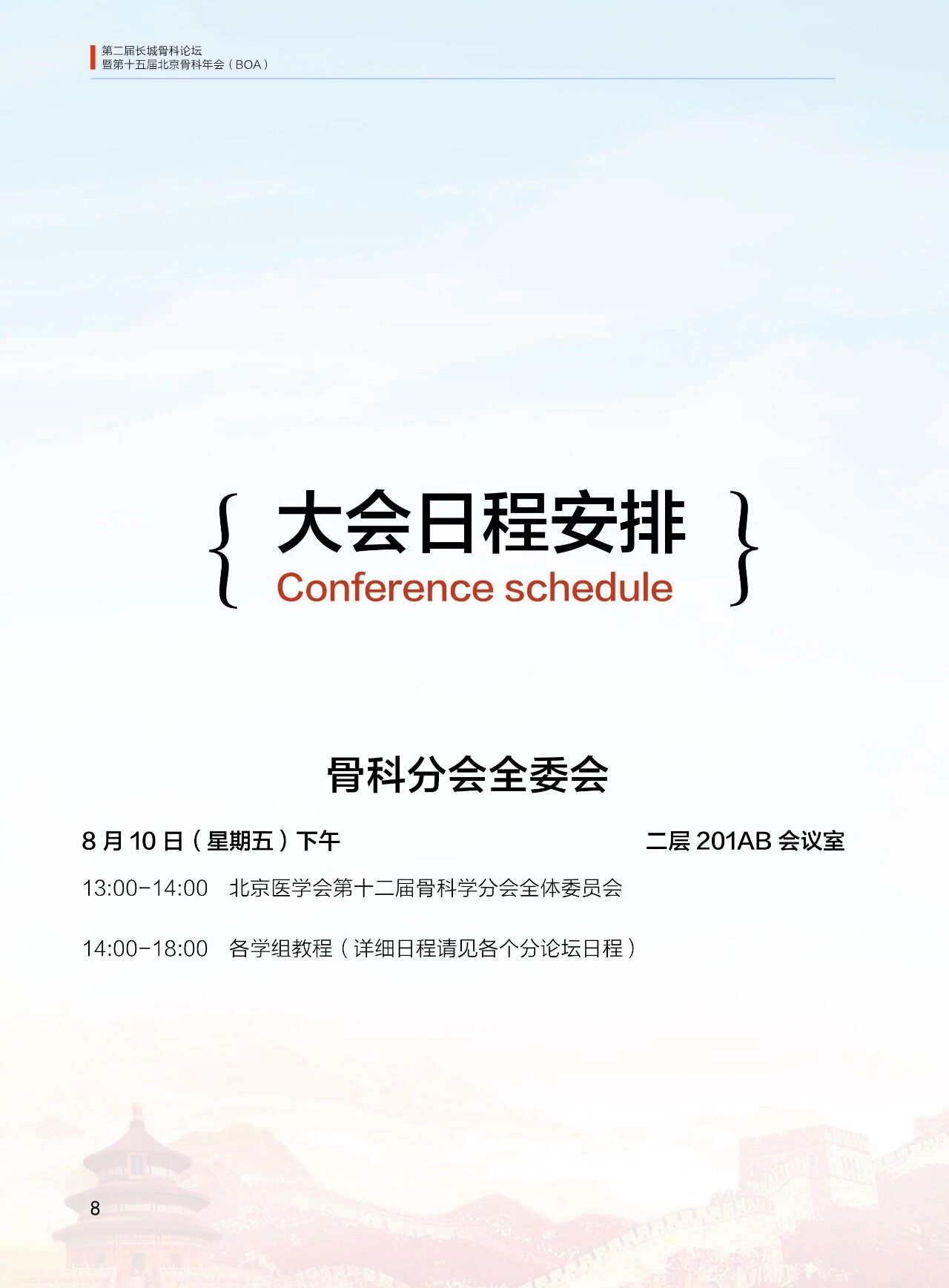 8月10日(周五)10:00-12:00 北京醫學會第十二屆骨科學分會全委會